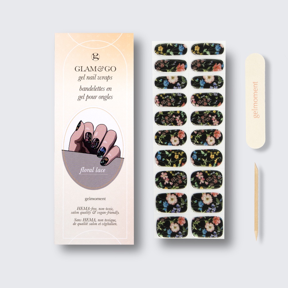 Our GLAM & GO gel nail wraps ensure that no matter how complex your chosen nail design, the application process remains incredibly simple. Our GLAM & GO gel nail wraps require no glue, base coat, or top coat—just peel them off the packaging, apply them to your nail, trim to size, cure twice, and voilà!