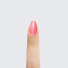 Reddish pink. Pastel. Pearl finish. Opaque. Warm undertone.